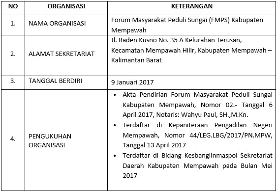FMPS Kab. Mempawah merupakan salah satu organisasi masyarakat di Kabupaten Mempawah yang cukup aktif dalam kegiatan pelestarian Daerah Aliran Sungai (DAS) Mempawah.